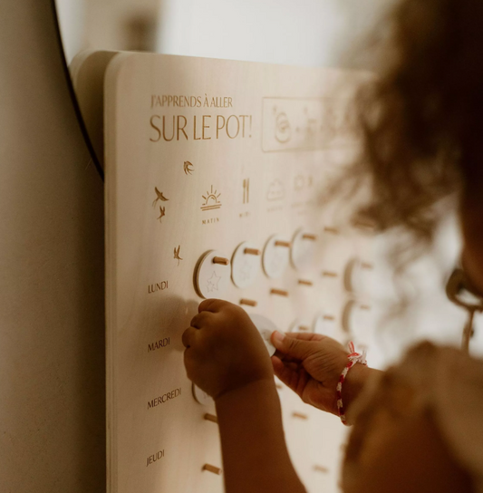 Tableau d'apprentissage en bois - J'apprends à aller sur le pot
